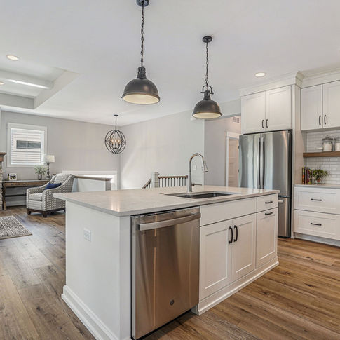 This quiet condo transitions beautifully from indoor living spaces to outdoor. An open concept layout provides the space necessary when family spends time through the holidays! Light gray interiors and transitional elements create a calming space. White beam details in the tray ceiling and stained beams in the vaulted sunroom bring a warm finish to the home.